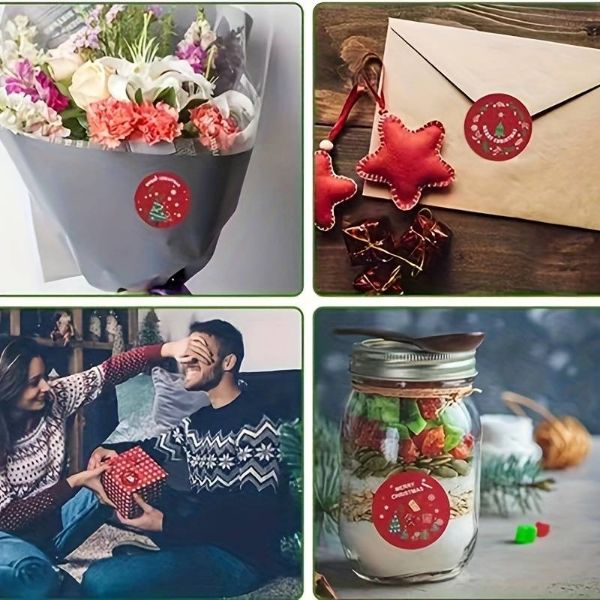Naše božične nalepke za darila imajo osem različnih stilov, na enem zvitku pa je vsaj 500 nalepk.