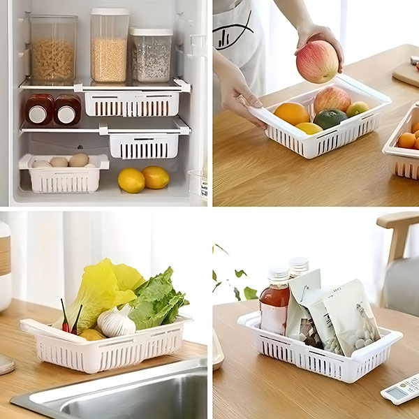 - Trakovi za obešanje: Učinkovito izkoriščanje prostora v hladilniku. Trakove lahko obesite na police hladilnika.