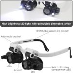 Opremljen z dvema nastavljivima LED lučema, ta povečevalnik zagotavlja optimalno osvetlitev v slabih svetlobnih pogojih za jasnejši pogled.