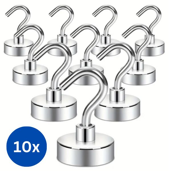 Naš komplet 10 magnetnih kljukic lahko zdrži do približno 10 kg (vsaka), zato so idealne za organizacijo garažnega orodja, kuhinjskih pripomočkov, ključev, brisač in še več.