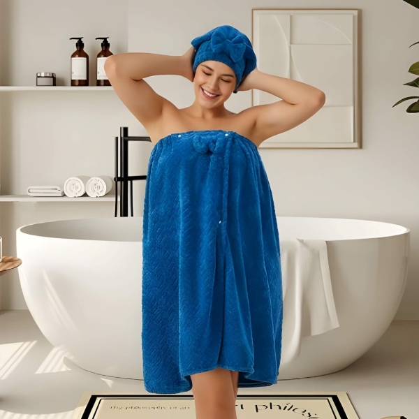 Nastavljiva kopalna brisača s kapo za sušenje las 2 v 1 | LUXROBA