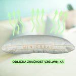 Notranja obloga vsebuje bambusova vlakna, ki naravno absorbirajo vlago in ohranjajo vzglavnik higienski. Polnilo iz visokokakovostnih mikrovlaken nudi nežno podporo za dolgotrajno udobje.