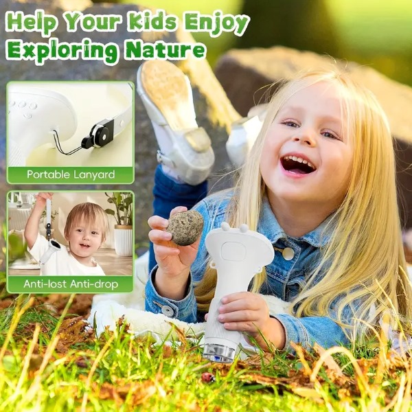Poveča do 200-krat, da otroci vidijo podrobnosti, ki jih prej niso opazili.
