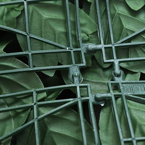 Panel z umetnimi zelenimi listi se namesti tako, da se plastični kol vstavi v luknjo na drugem delu plastike.
