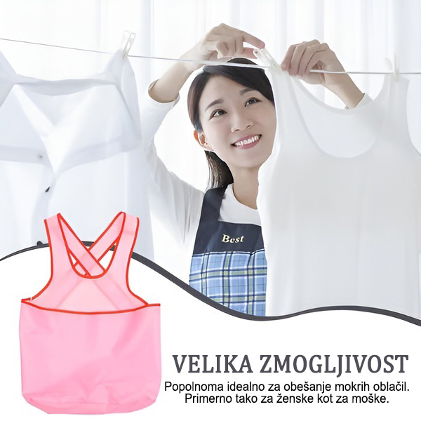 V prostornih žepih predpasnika lahko shranite oblačila, detergent, telefon, ključe in vse, kar potrebujete za lažja gospodinjska opravila.