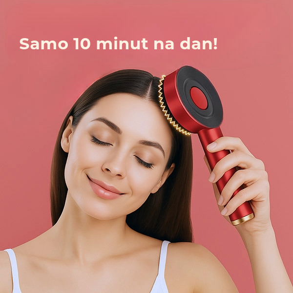 KORAK 4: Počasi drsite s krtačo po lasišču 10 minut in uživajte v pomirjujoči, terapevtski masaži.