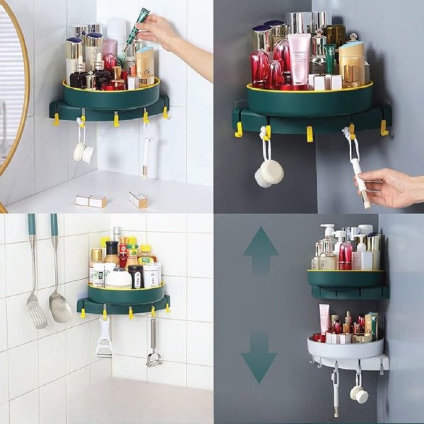 Z vrtljivim kotnim organizatorjem enostavno maksimalno izkoristite neuporabljen prostor v kotu, hkrati pa so vaši predmeti lepo urejeni in na dosegu roke.