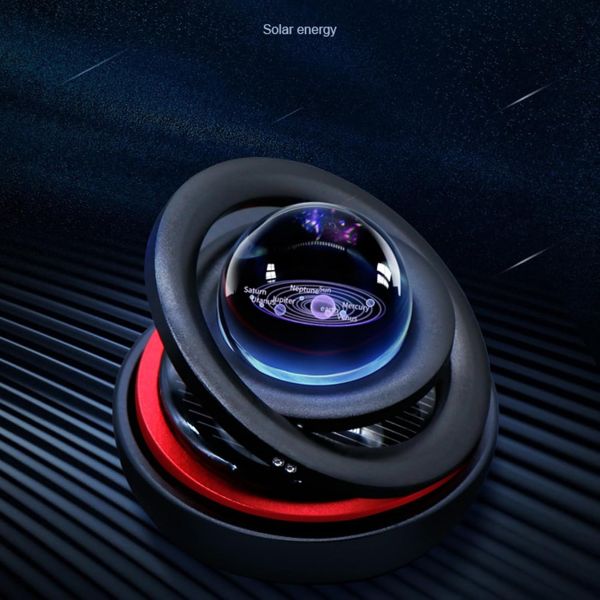 Solarni dvojni obroč osvežilca se samodejno vrti, ko je izpostavljen sončni svetlobi, sprošča dišavo in ohranja zrak v avtomobilu svež.