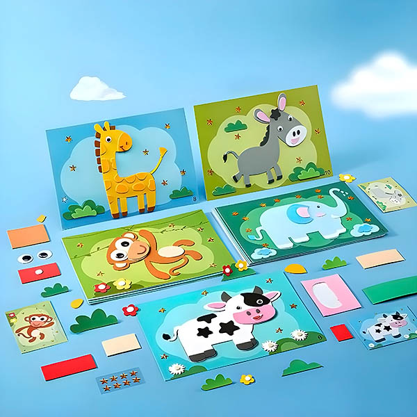 STICKYFUN vključuje izrazite plasti in bogate barve, ki jih je treba lepiti plast za plastjo. Igre z nalepkami lahko izboljšajo otrokovo sposobnost prepoznavanja barv, trenirajo slikovno razmišljanje ter izboljšajo telesno koordinacijo in sposobnost reševanja problemov.