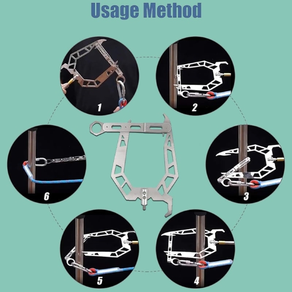 Uporabno za prijemanje torb z opremo, privezovanje gugalnic, visečih mrež, vrvi ali drugih fiksnih predmetov.