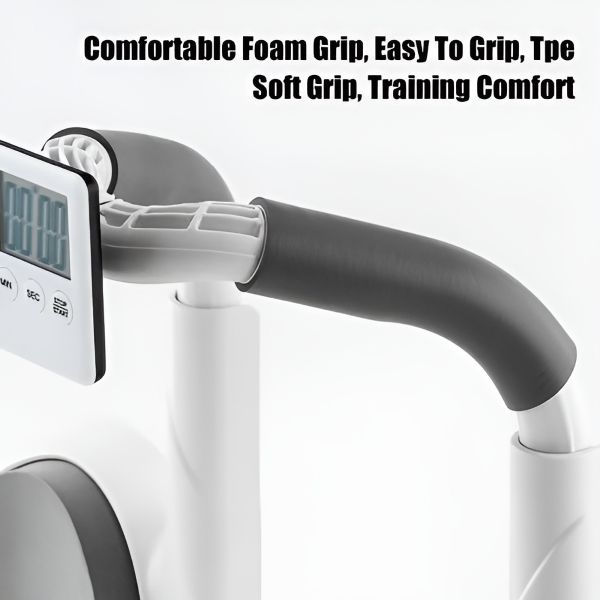 Z mehkimi, ergonomskimi ročaji trenažer PLANKTIME zagotavlja udobje med uporabo, razbremenjuje sklepe in nudi prilagojeno oporo z oblikovanim oblazinjenjem.