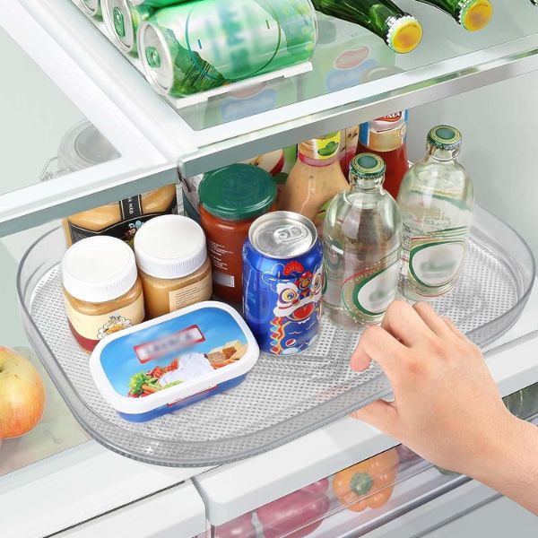 Z našim prozornim pravokotnim pladnjem za hladilnik poskrbite za red in čistočo v hladilniku. Ta za 360° vrtljiv organizator hladilnika je odličen za enostaven dostop in maksimalno uporabo prostora. Enostavno ga je čistiti, ima nedrseče priseske in ga ni treba namestiti.