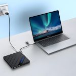 Združuje zapisovalnik CD-jev in DVD-jev z priročnim večvratnim razdelilnikom USB.
